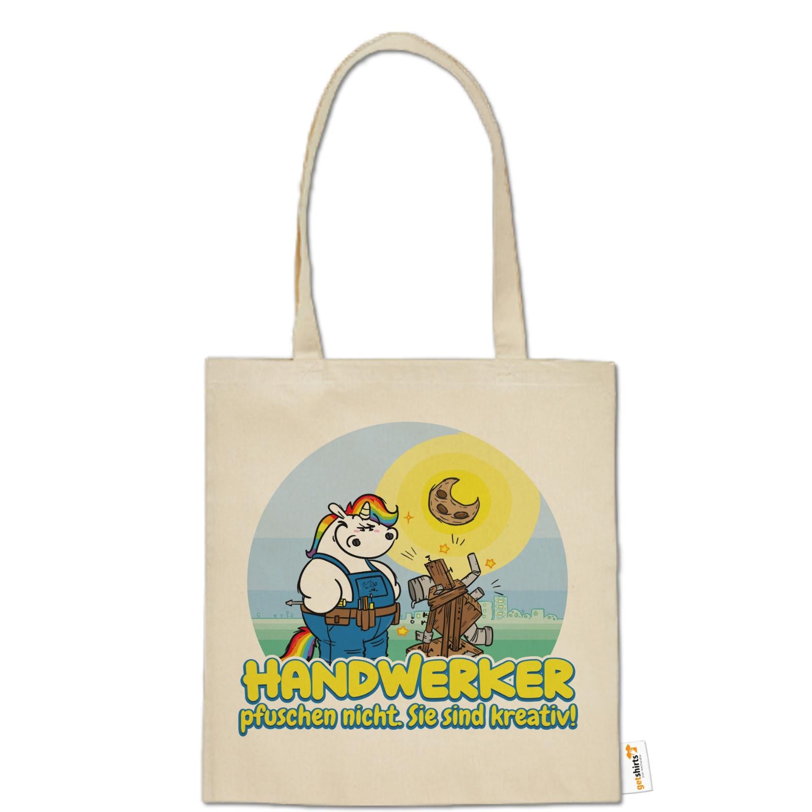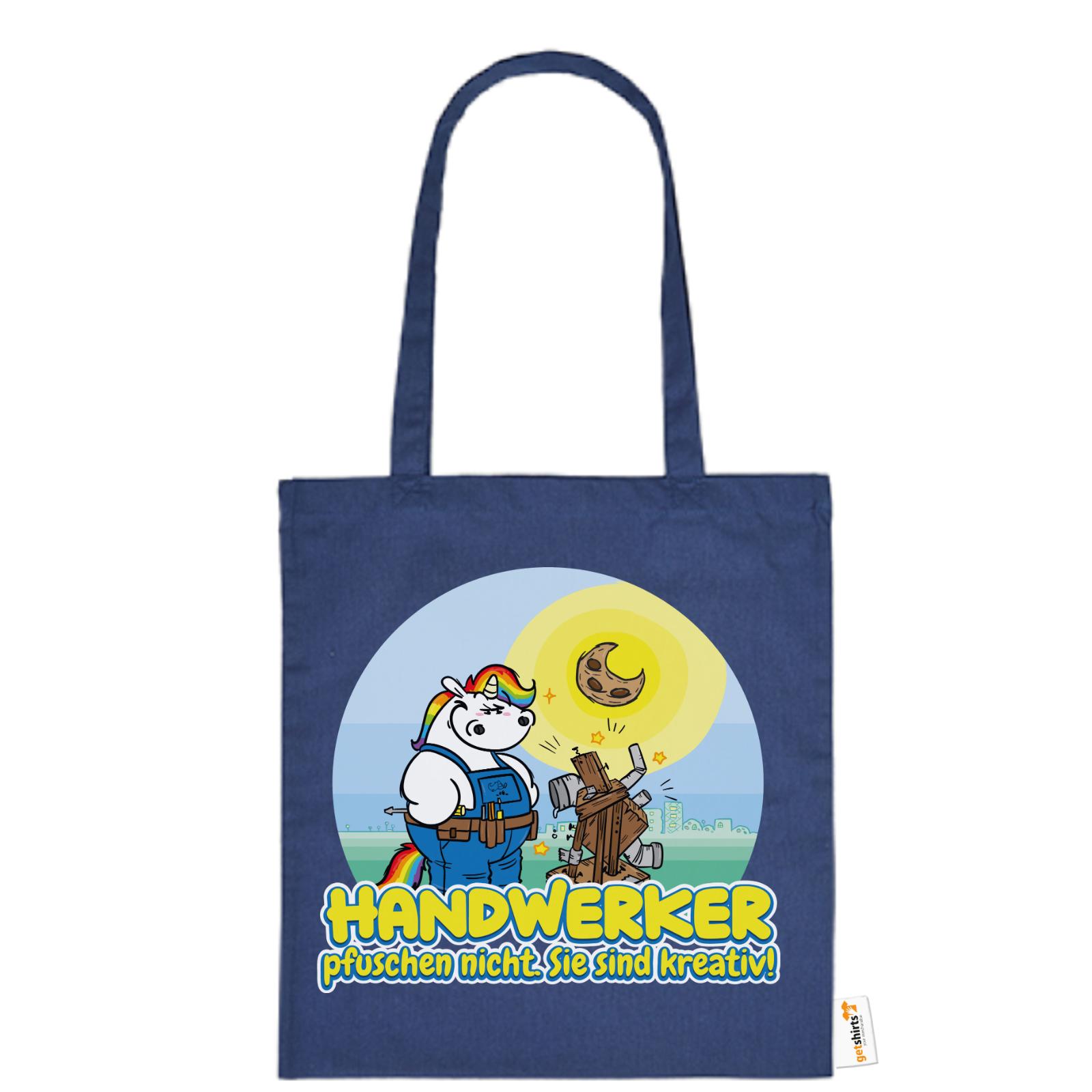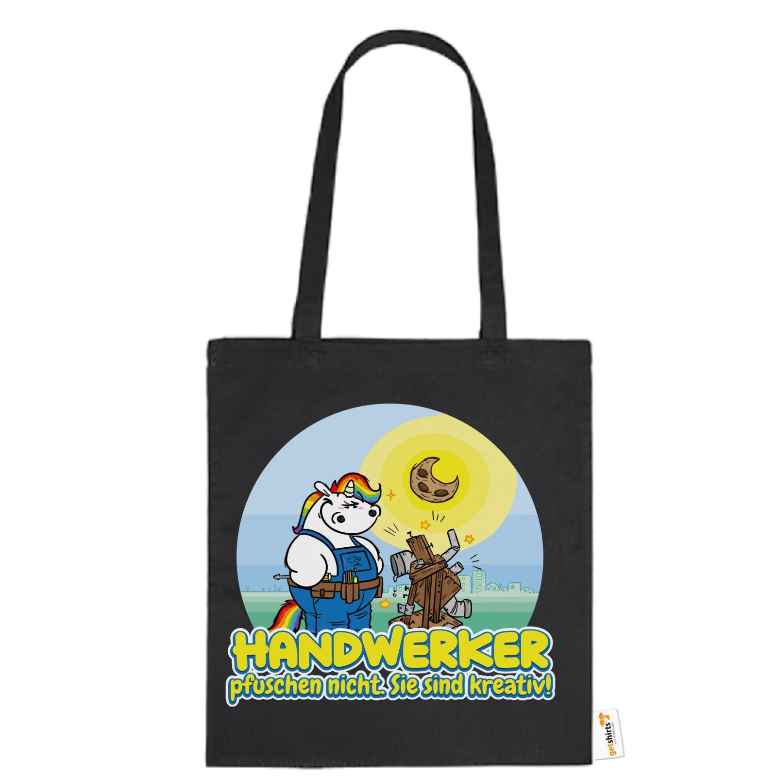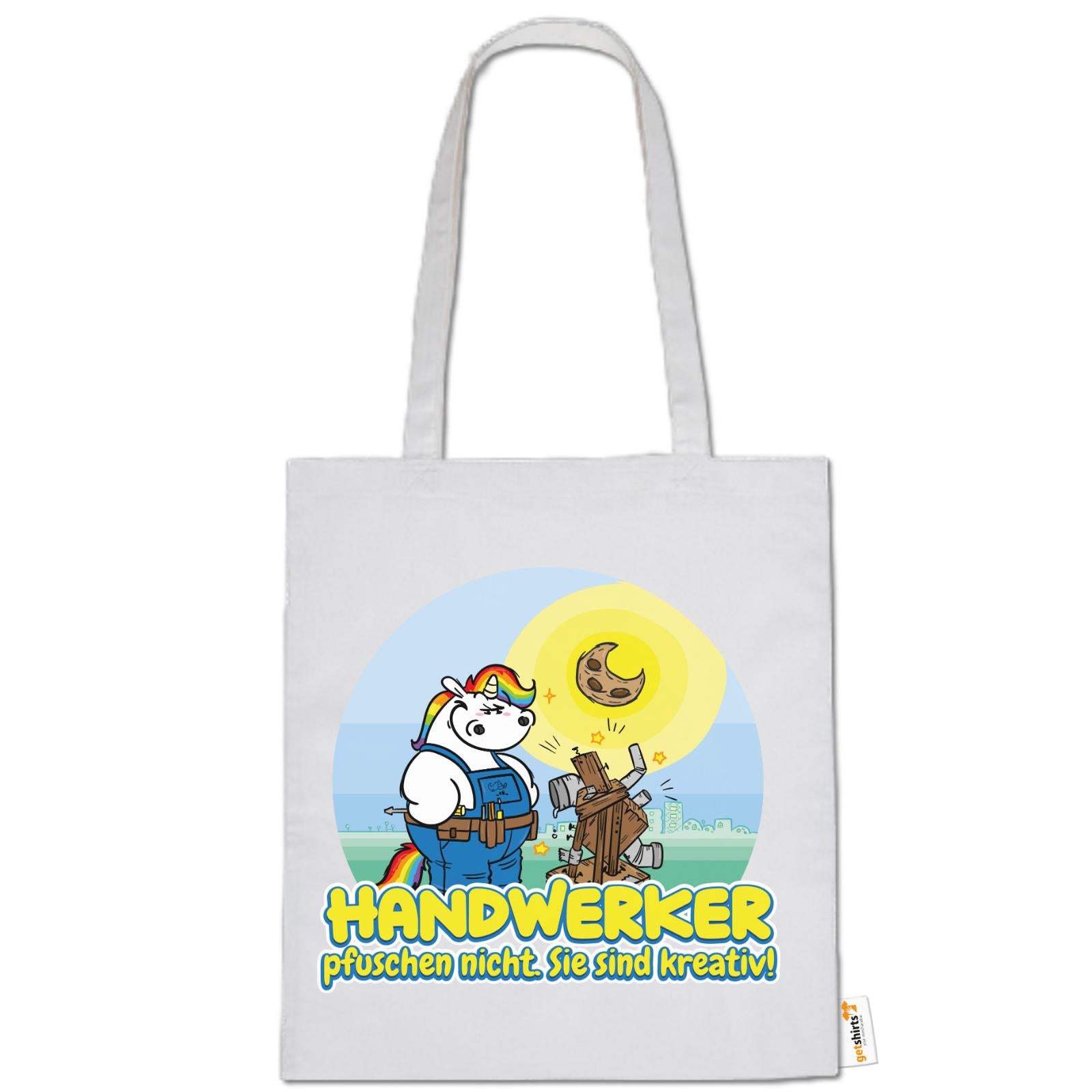 Pummeleinhorn findet: Handwerk ist Kunst! Diese witzige Baumwolltasche bringt Farbe, Flausch und Glitzer in jeden Handwerksbetrieb!