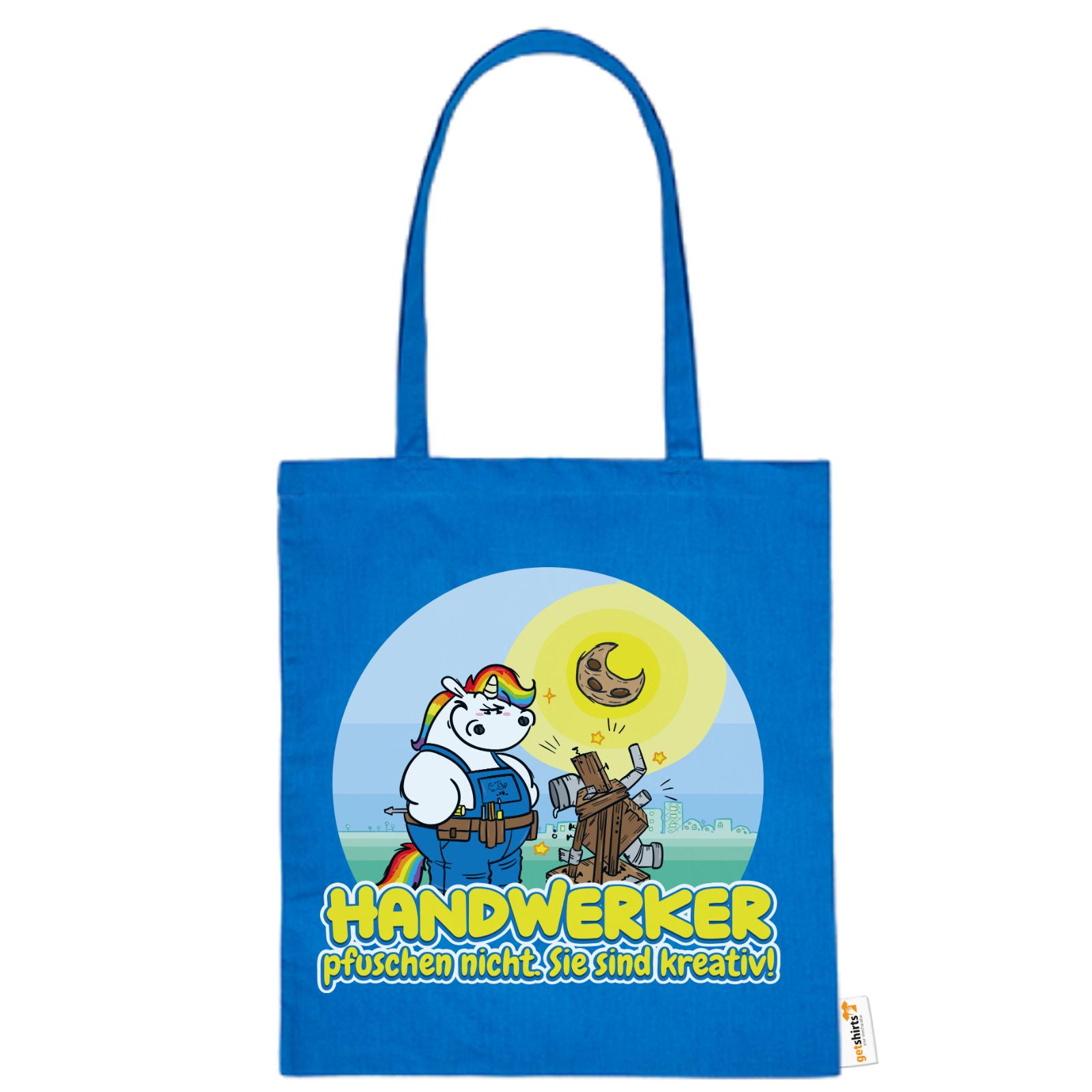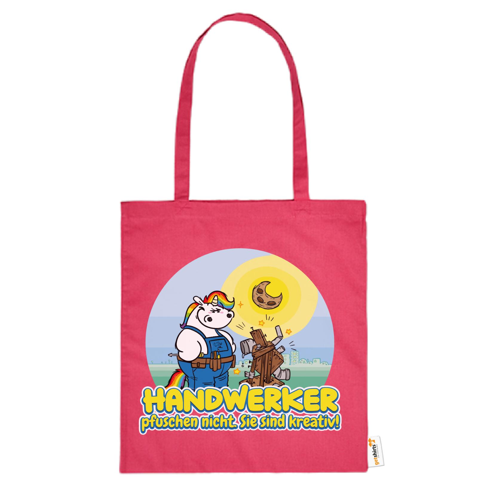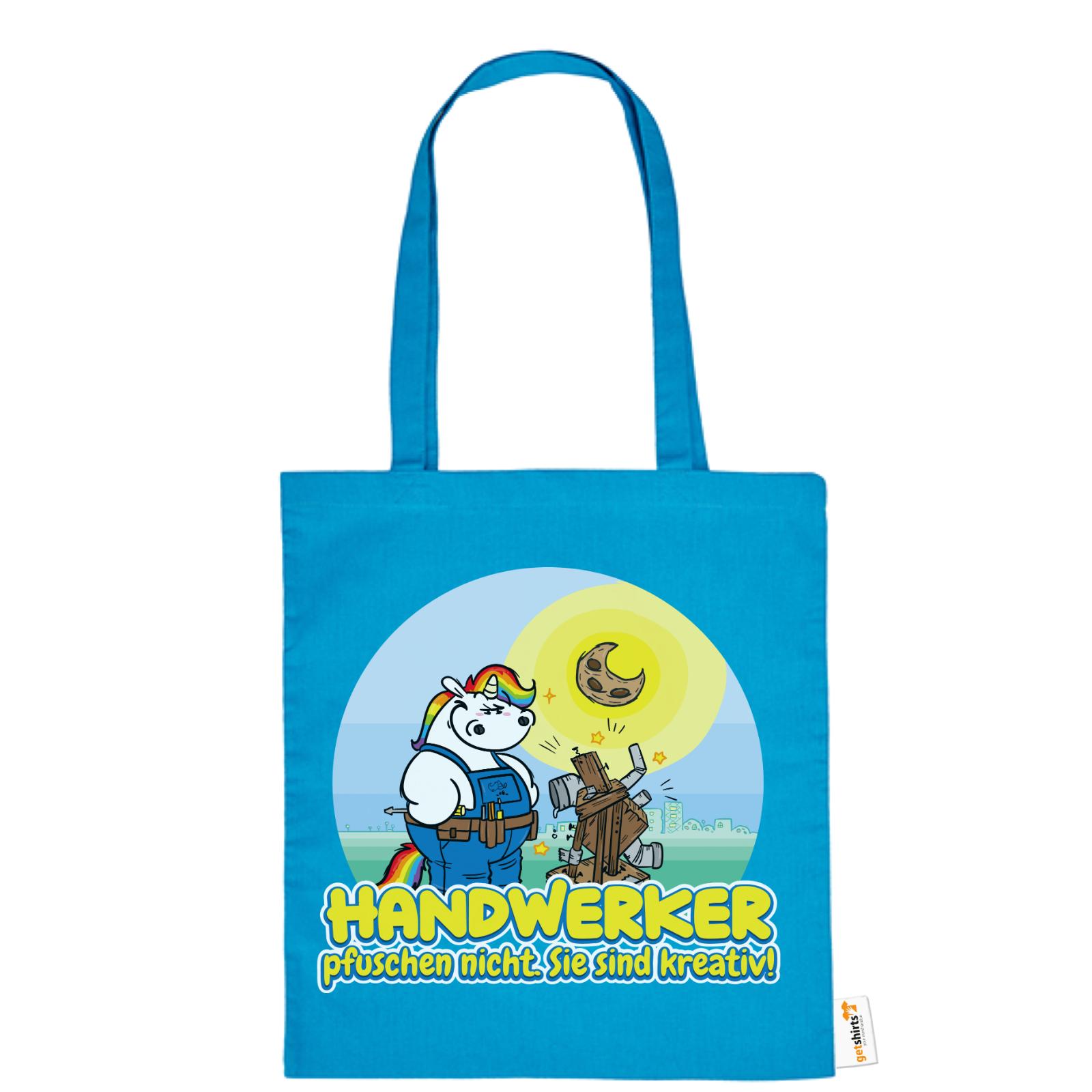 Pummeleinhorn findet: Handwerk ist Kunst! Diese witzige Baumwolltasche bringt Farbe, Flausch und Glitzer in jeden Handwerksbetrieb!