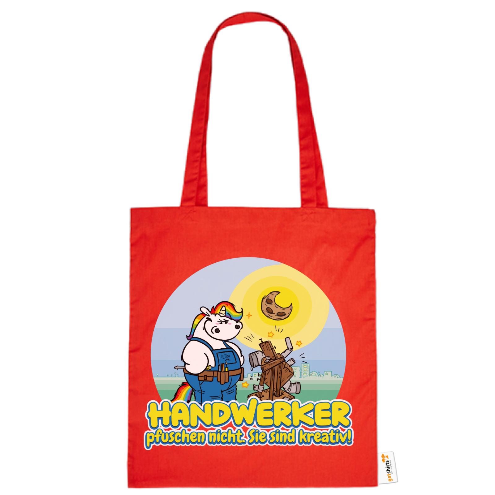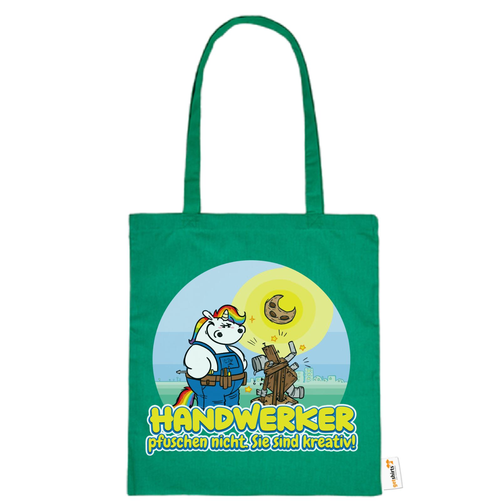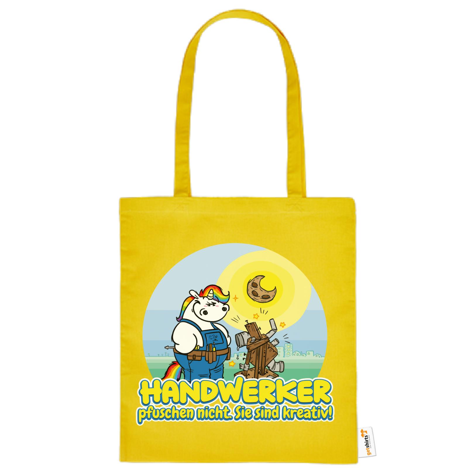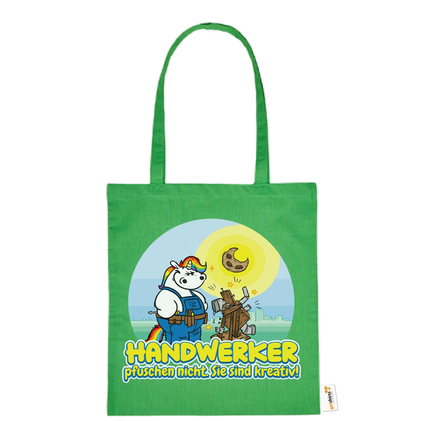 Pummeleinhorn findet: Handwerk ist Kunst! Diese witzige Baumwolltasche bringt Farbe, Flausch und Glitzer in jeden Handwerksbetrieb!