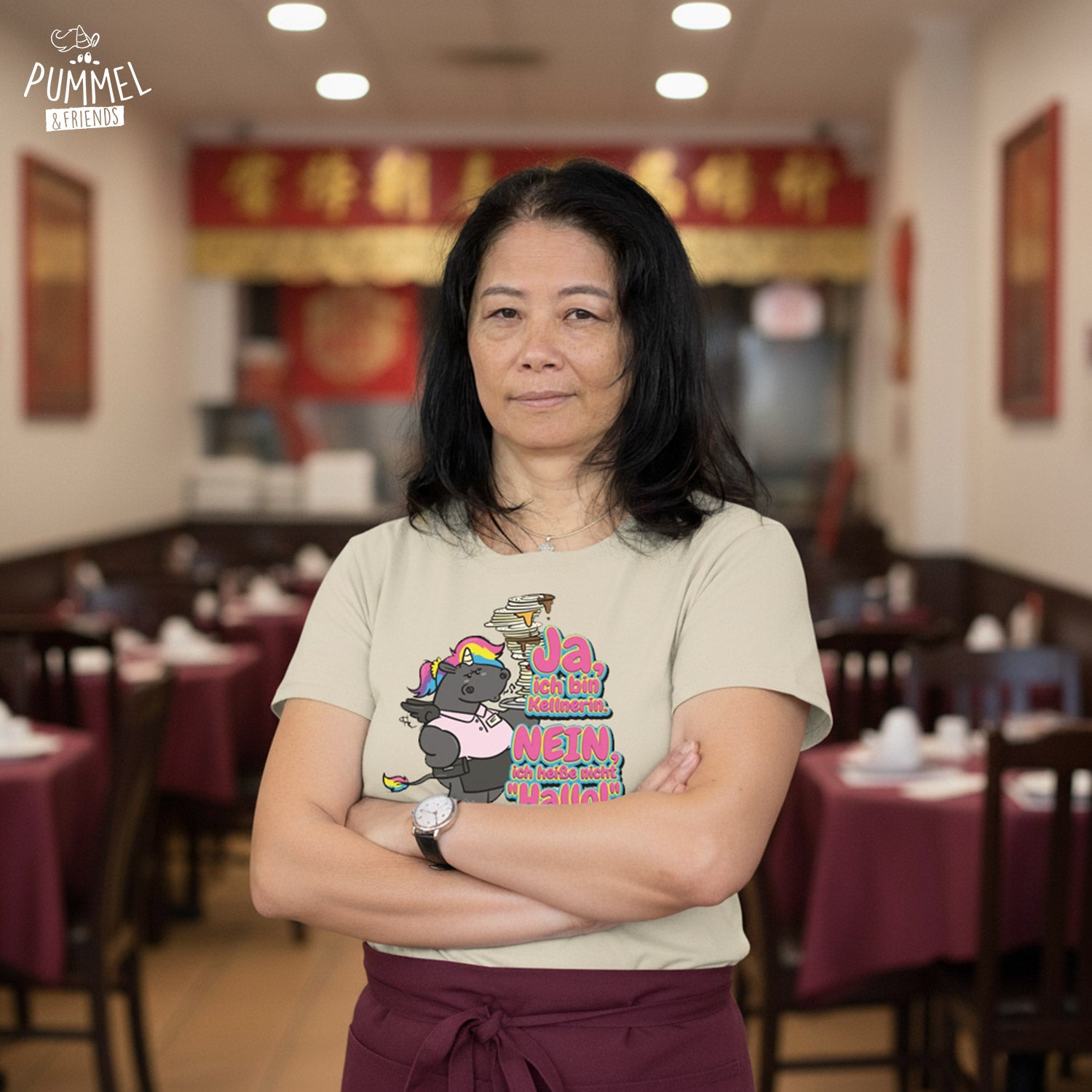 Runa serviert Witz mit Stil! Dieses freche Shirt für Kellnerinnen bringt die Wahrheit charmant auf den Punkt – mit Augenzwinkern und Glitzerflügeln.