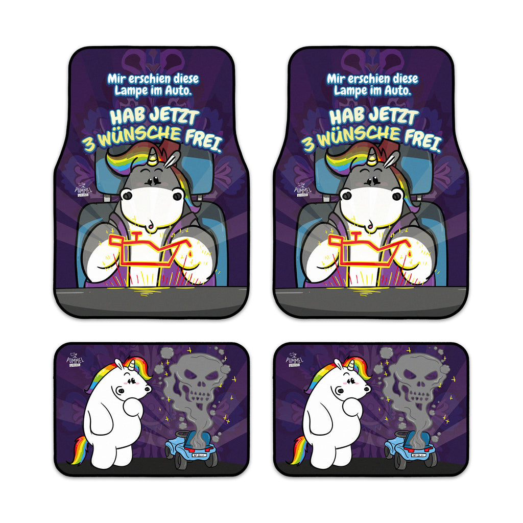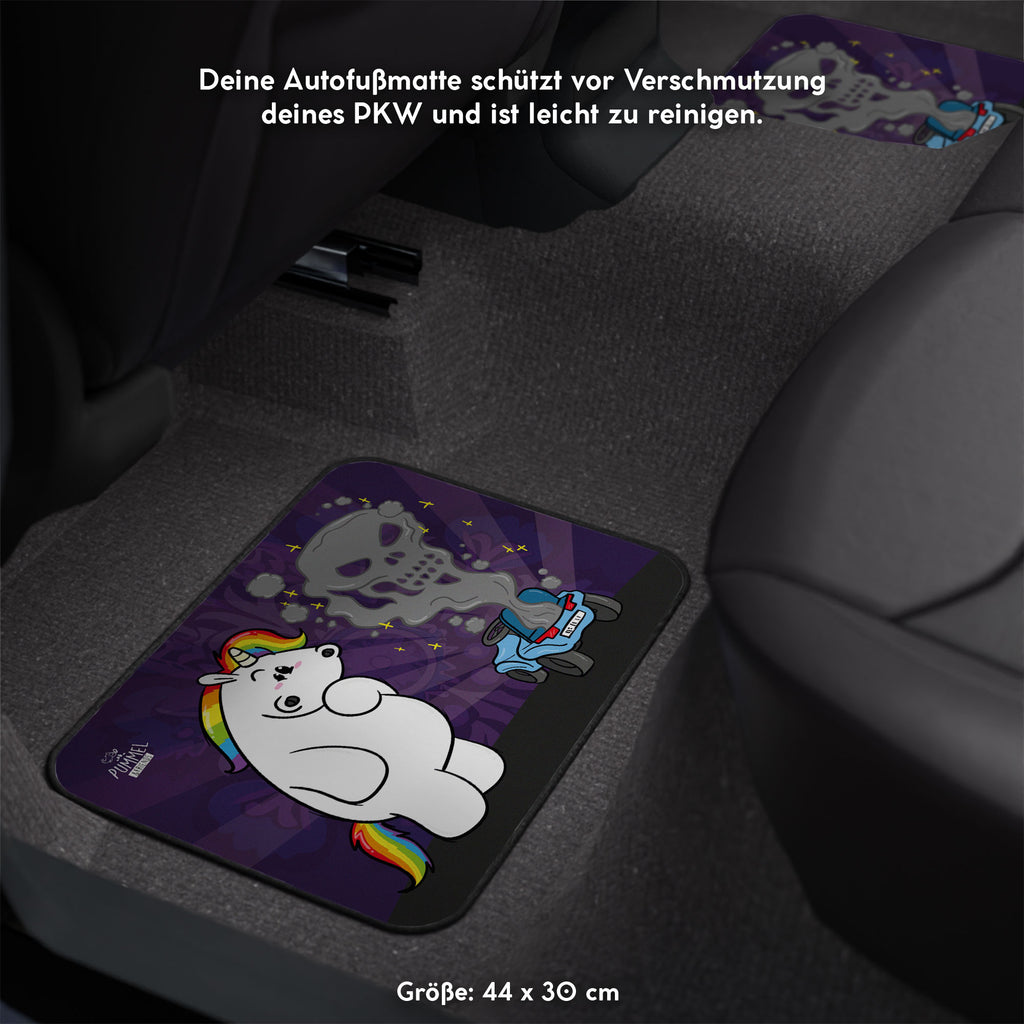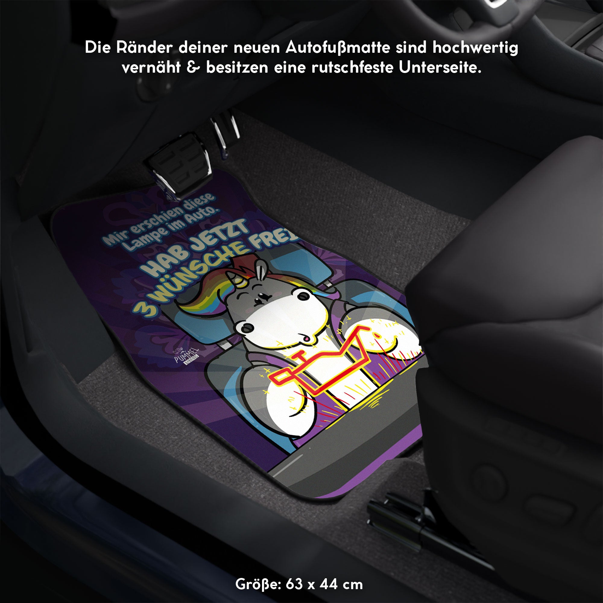 Um zumindest deine Fahrt ein bisschen magischer zu gestalten, haben wir etwas ganz Besonderes für dich: unser 4-teiliges Auto Fußmatten Set. Diese liebevoll gestalteten Matten mit rutschfester Gummi-Unterseite sorgen dafür, dass alles an seinem Platz bleibt und dein Fahrzeug immer sauber und einladend aussieht. Sie machen jede Fahrt zu einem kleinen Einhorn Wunder!