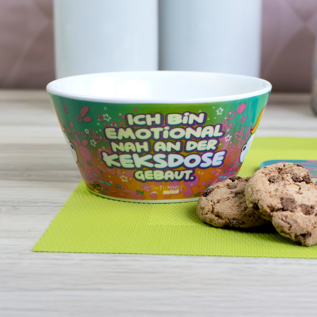 Wenn das Frühstück schon mit einem Schmunzeln beginnt, kann der Tag nur gut werden! Mit dem liebevoll frechen Spruch „Ich bin emotional nah an der Keksdose gebaut“ bringt diese Müslischale nicht nur dein Lieblingsmüsli, sondern auch deine Laune auf ein neues Level. Das Pummeleinhorn erinnert dich charmant daran, dass es völlig okay ist, sich ein bisschen in Snacks zu verlieben – vor allem, wenn sie in dieser zauberhaften Schale serviert werden.