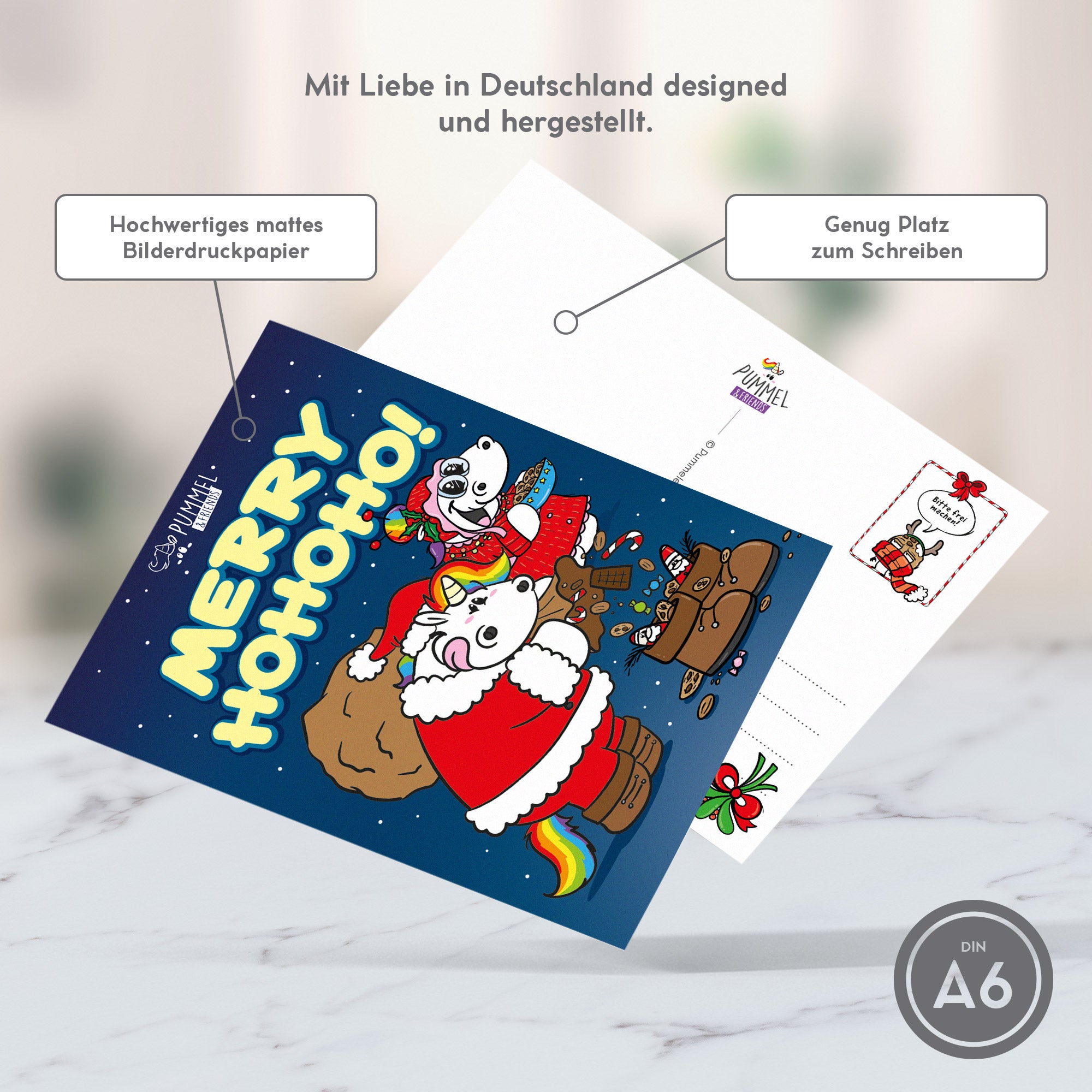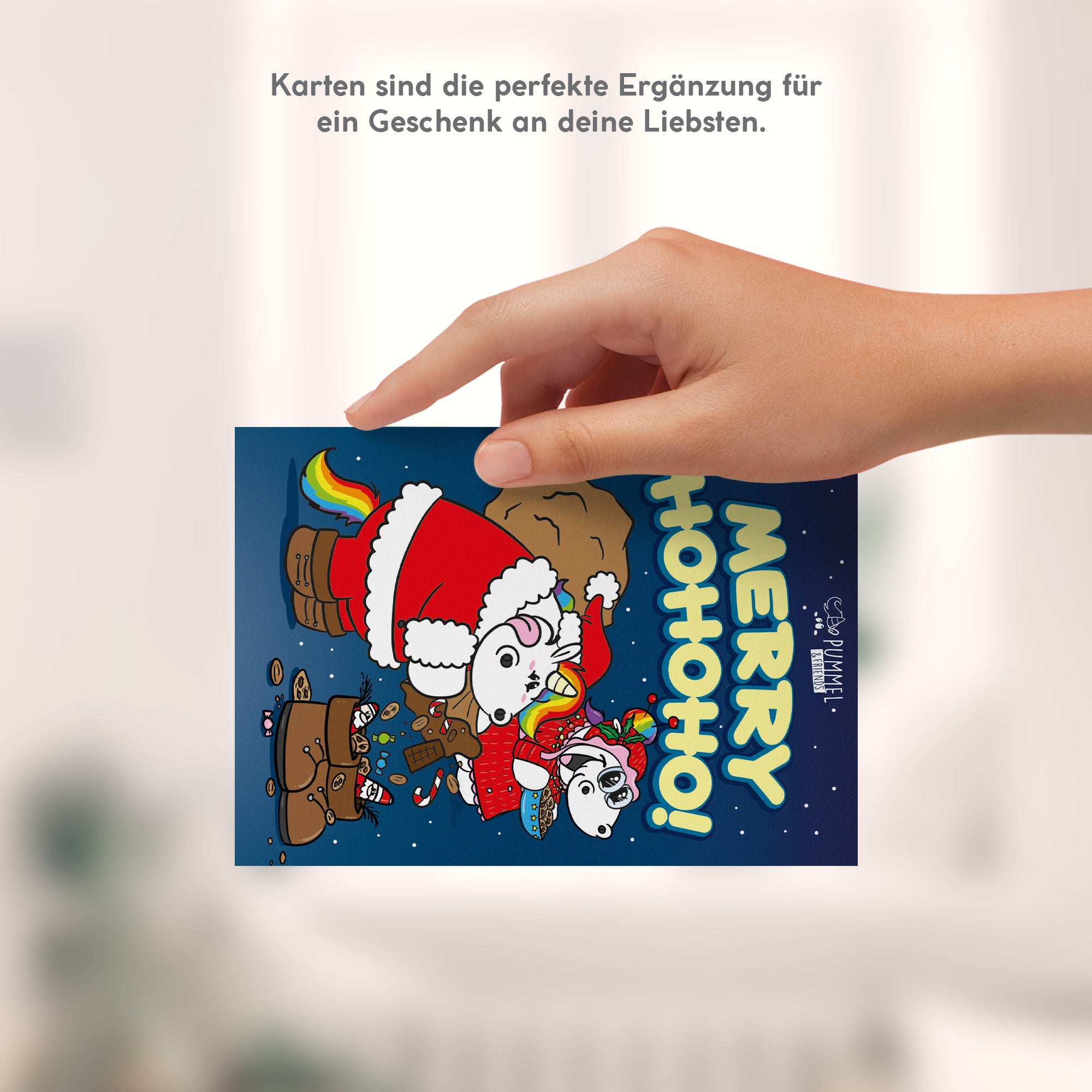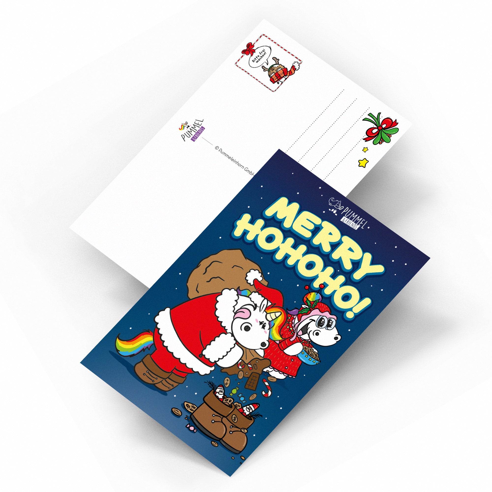Pummeleinhorn Postkarte - Merry Ho Ho Ho