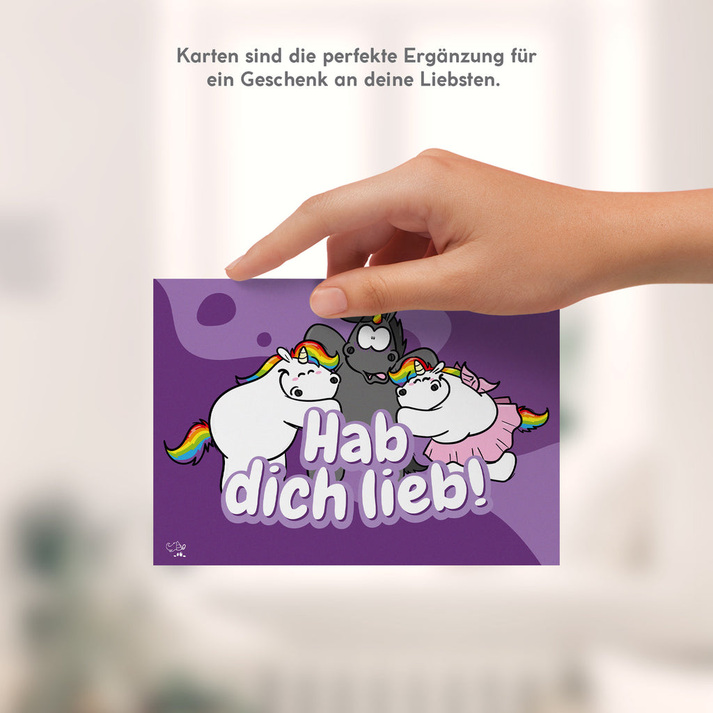 Es gibt Momente, da braucht es einfach eine Umarmung – oder wenigstens diese Karte! Pummel und Pummelfee umarmen Grummel mit ganz viel Glitzerliebe und sagen: „Hab dich lieb“. Denn auch die Grummeligsten unter uns brauchen manchmal einfach eine herzliche Umarmung! Ideal als kleine Geste für Herzensmenschen, denen Du deine Zuneigung zeigen willst.