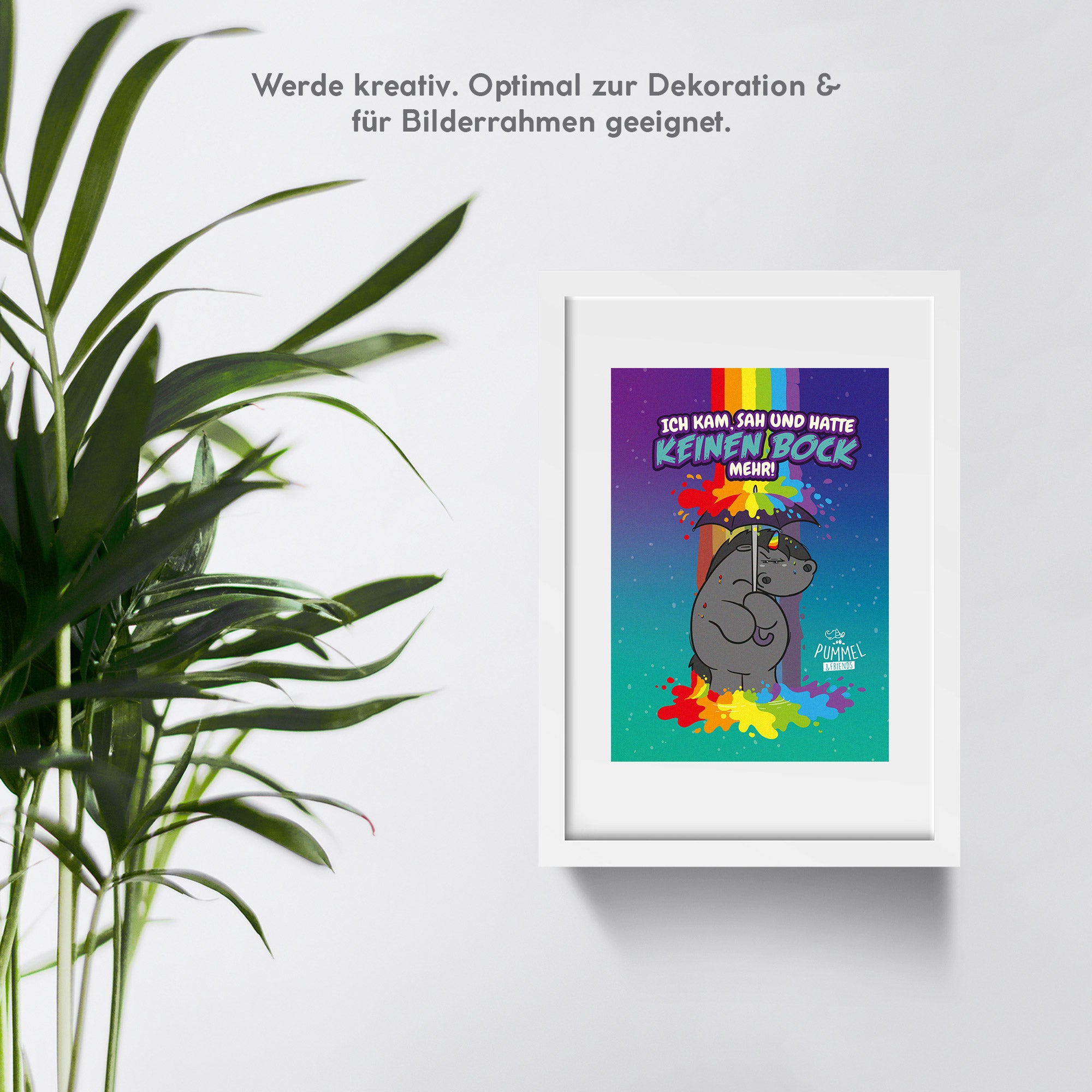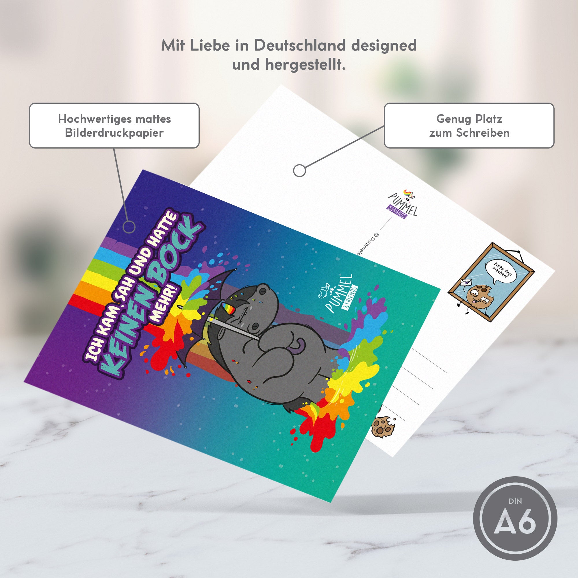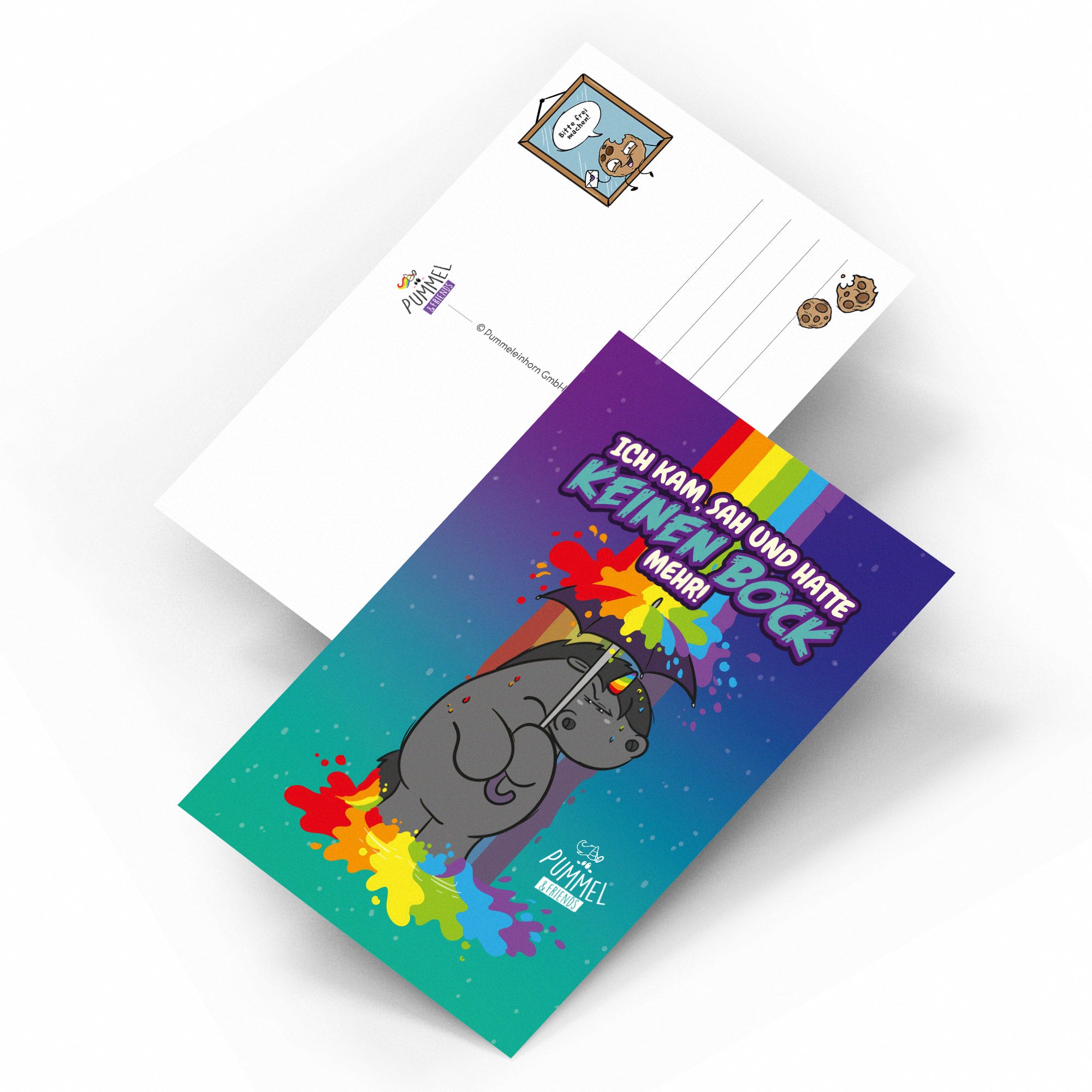 Diese Postkarte im A6 Format mit Grummeleinhorn bringt die Stimmung auf den Punkt: "Ich kam, sah und hatte keinen Bock mehr“.