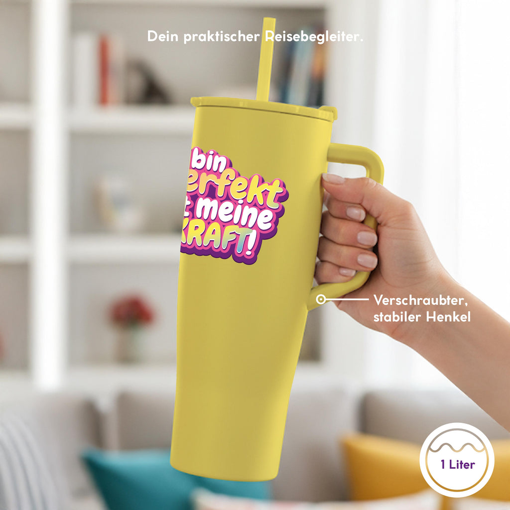 Für alle, die Ecken, Kanten und ganz viel Charakter haben: Mit Runa an deiner Seite darfst Du unperfekt und trotzdem wundervoll sein. Dieser XXL To Go Becher mit der empowernden Botschaft „Ich bin nicht perfekt und das ist meine Superkraft!“ begleitet dich durch chaotische Tage, kreative Phasen oder einfach nur deine Me-Time. Runa erinnert dich liebevoll daran, dass deine wahre Stärke in der Selbstliebe liegt.