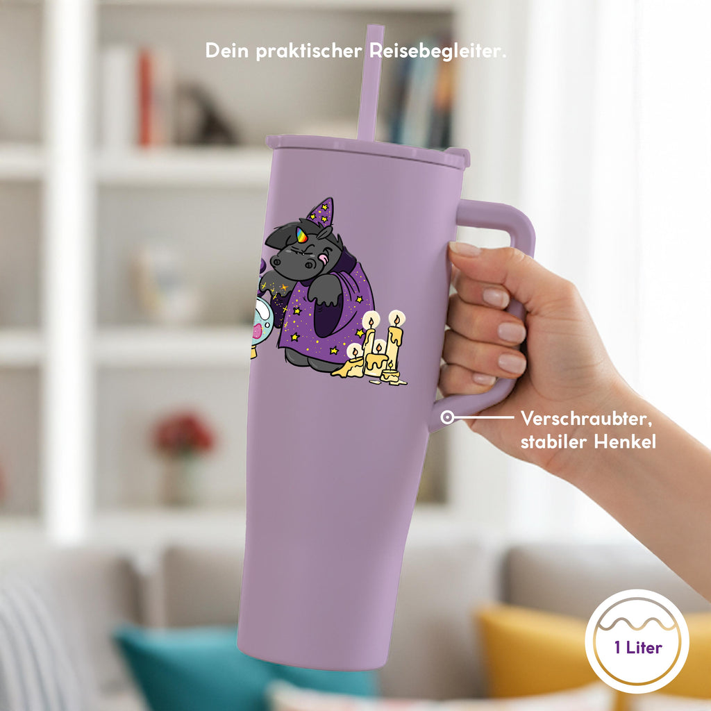 Grummeleinhorn hat heute seinen Zauberumhang übergeworfen – und plötzlich ist alles ein kleines bisschen besser. Mit dem Spruch „Abrakadabra! Alles wird gut.“ erinnert dich dieser XXL To Go Becher daran, dass auch schlechte Laune verzaubert werden kann. Perfekt für alle, die morgens einen kleinen Schubs in Richtung Optimismus brauchen.