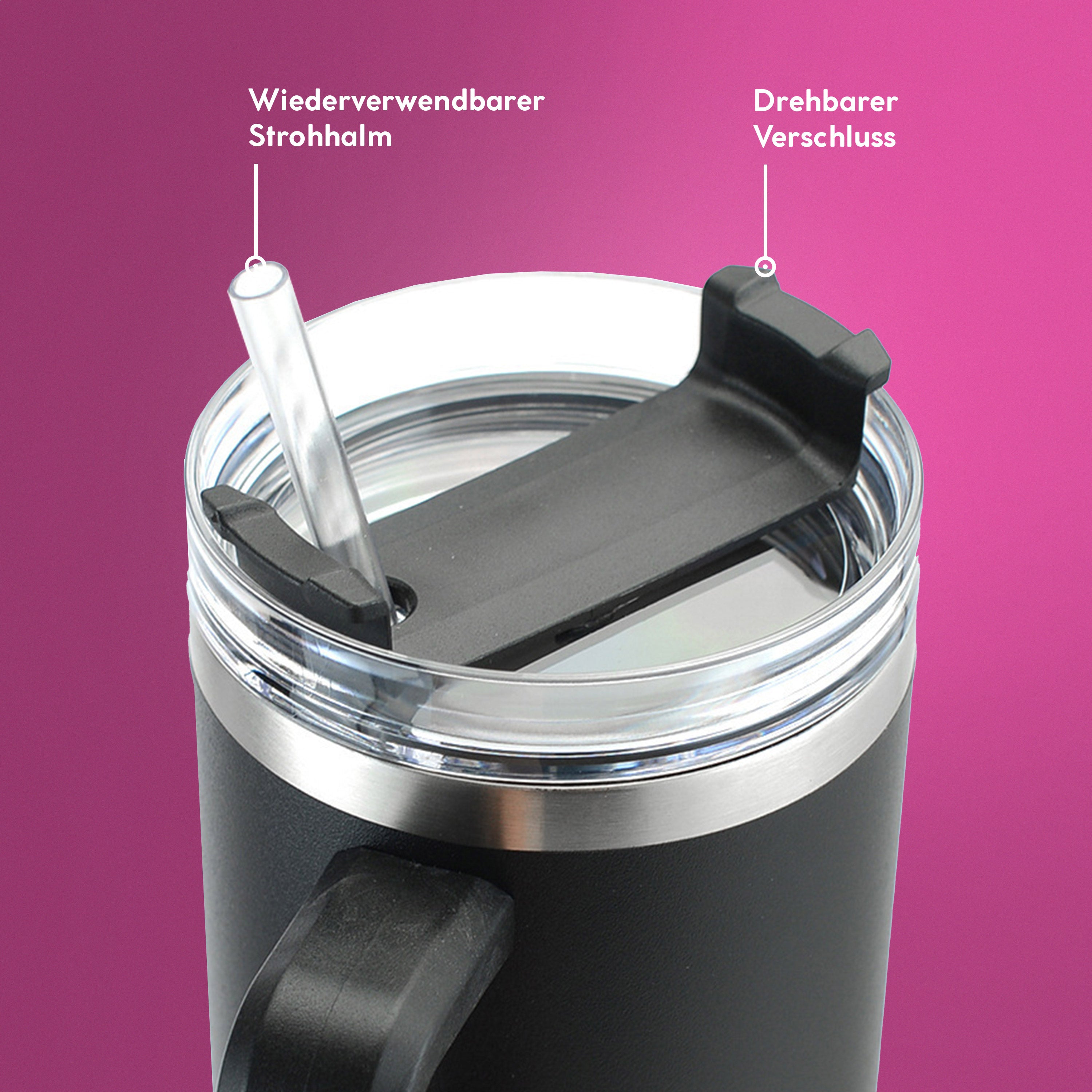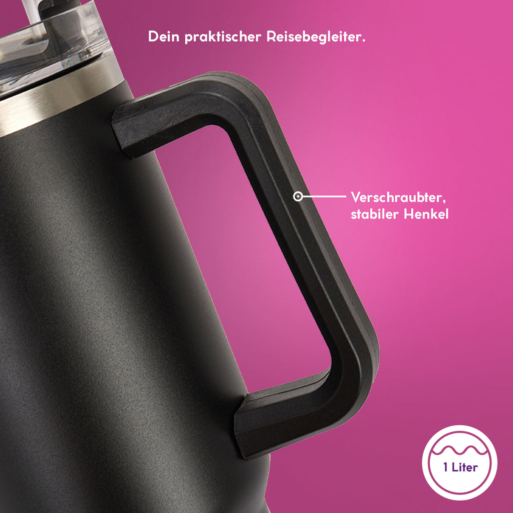 Hergestellt aus hochwertigem, rostfreiem Edelstahl, überzeugt der Becher nicht nur mit seinem liebevollen Design, sondern auch mit seiner Funktionalität. Das großzügige Fassungsvermögen von 1 Liter sorgt dafür, dass Du immer genug von deinem Lieblingsgetränk dabei hast – perfekt für lange Tage unterwegs oder gemütliche Stunden zu Hause. Der praktische Strohhalm macht das Trinken noch bequemer und sorgt für ein rundum angenehmes Erlebnis.