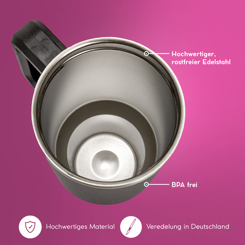 Dank der BPA-freien Verarbeitung kannst Du dich auf einen sicheren Genuss verlassen. Mit einer Höhe von 26,5 cm und einem Becherfuß-Durchmesser von 7,5 cm passt der Becher zudem in die meisten Getränkehalter – ideal für unterwegs.