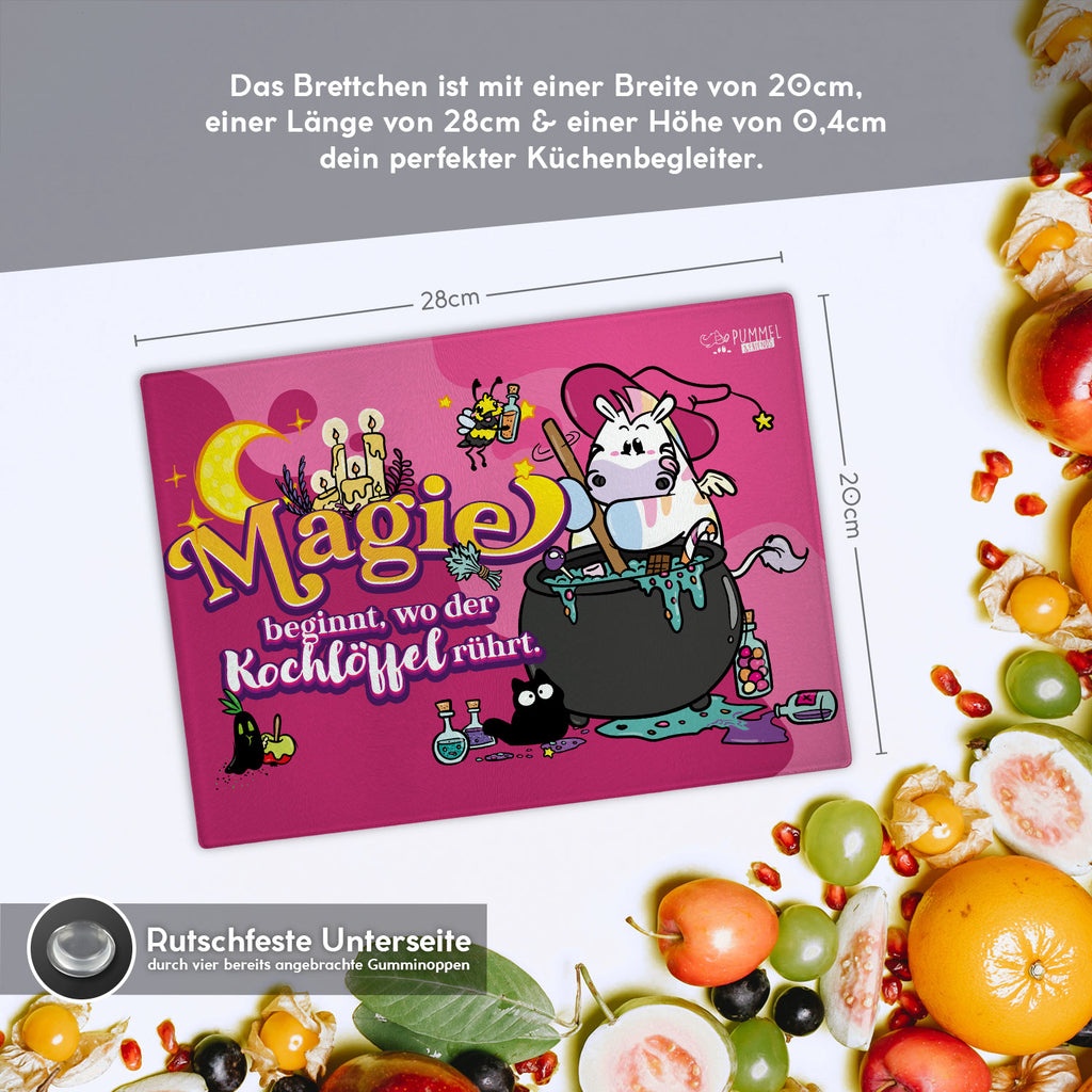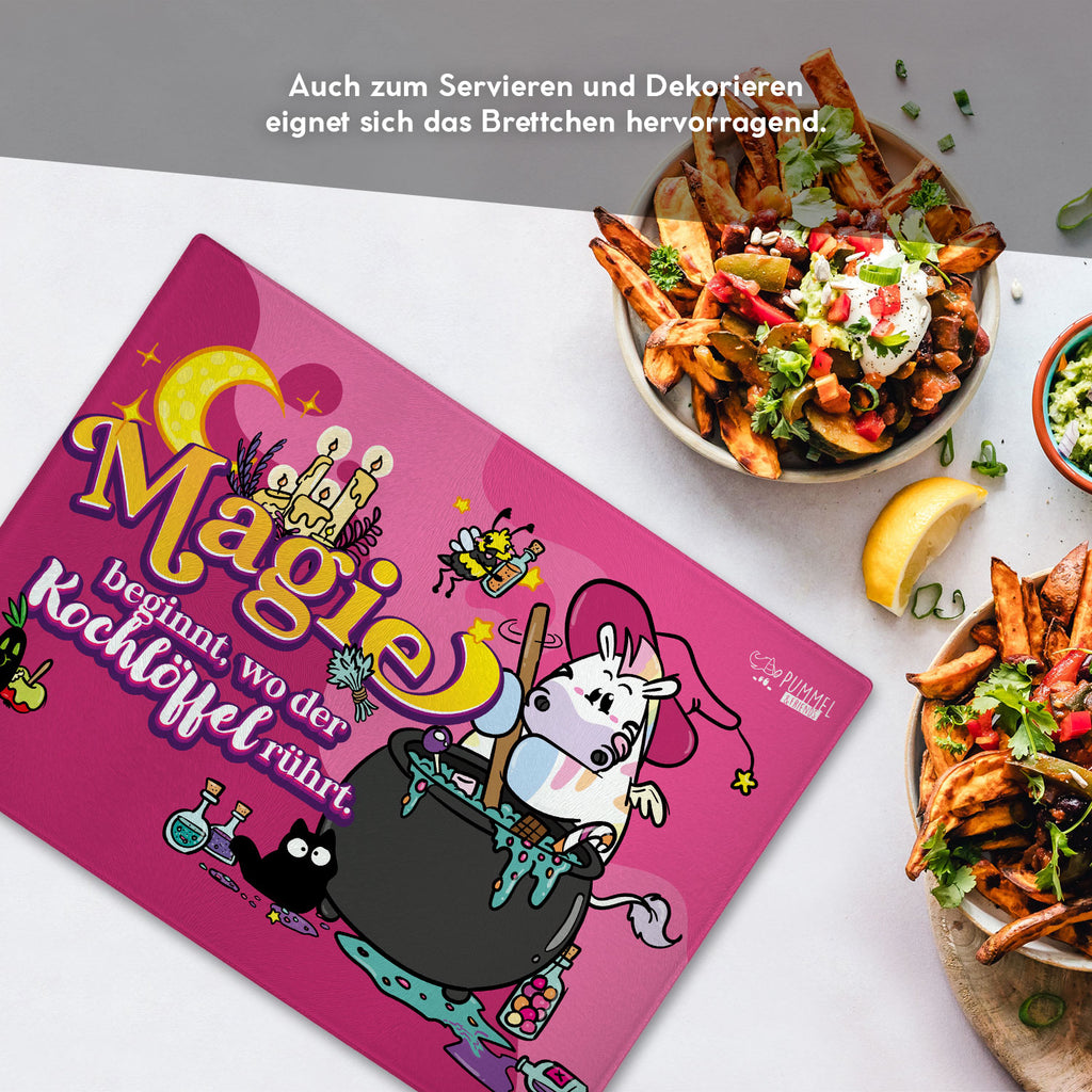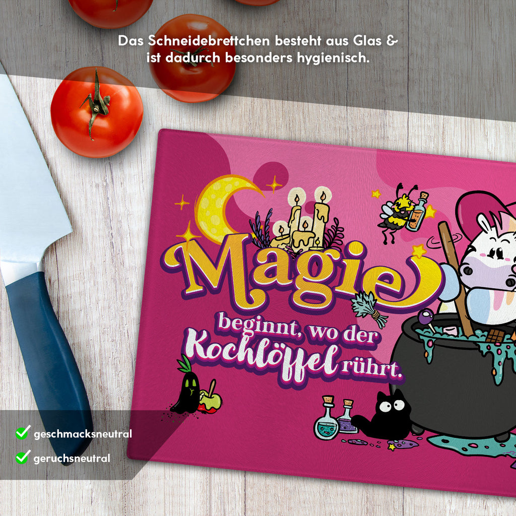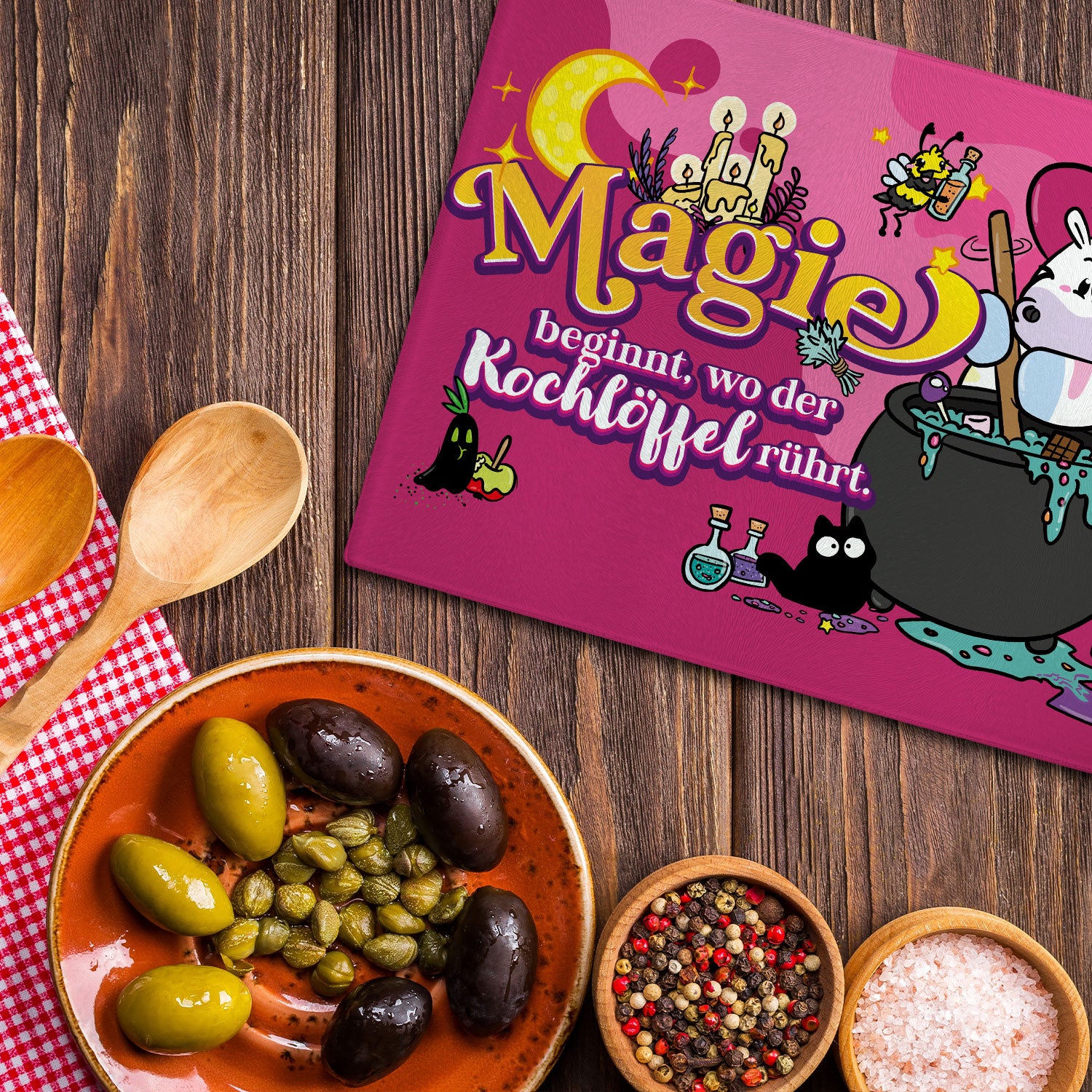 In jeder Küche steckt ein bisschen Magie – besonders dann, wenn Zebrasus den Kochlöffel schwingt. Dieses liebevoll gestaltete Schneidebrett aus Glas bringt mit dem Spruch „Magie beginnt, wo der Kochlöffel rührt“ nicht nur ein Lächeln auf die Lippen, sondern auch gute Laune beim Schnippeln, Rühren und Zaubern. Ideal für Familienküchen, kreative Köch*innen und alle, die gern mit einer Prise Fantasie würzen.