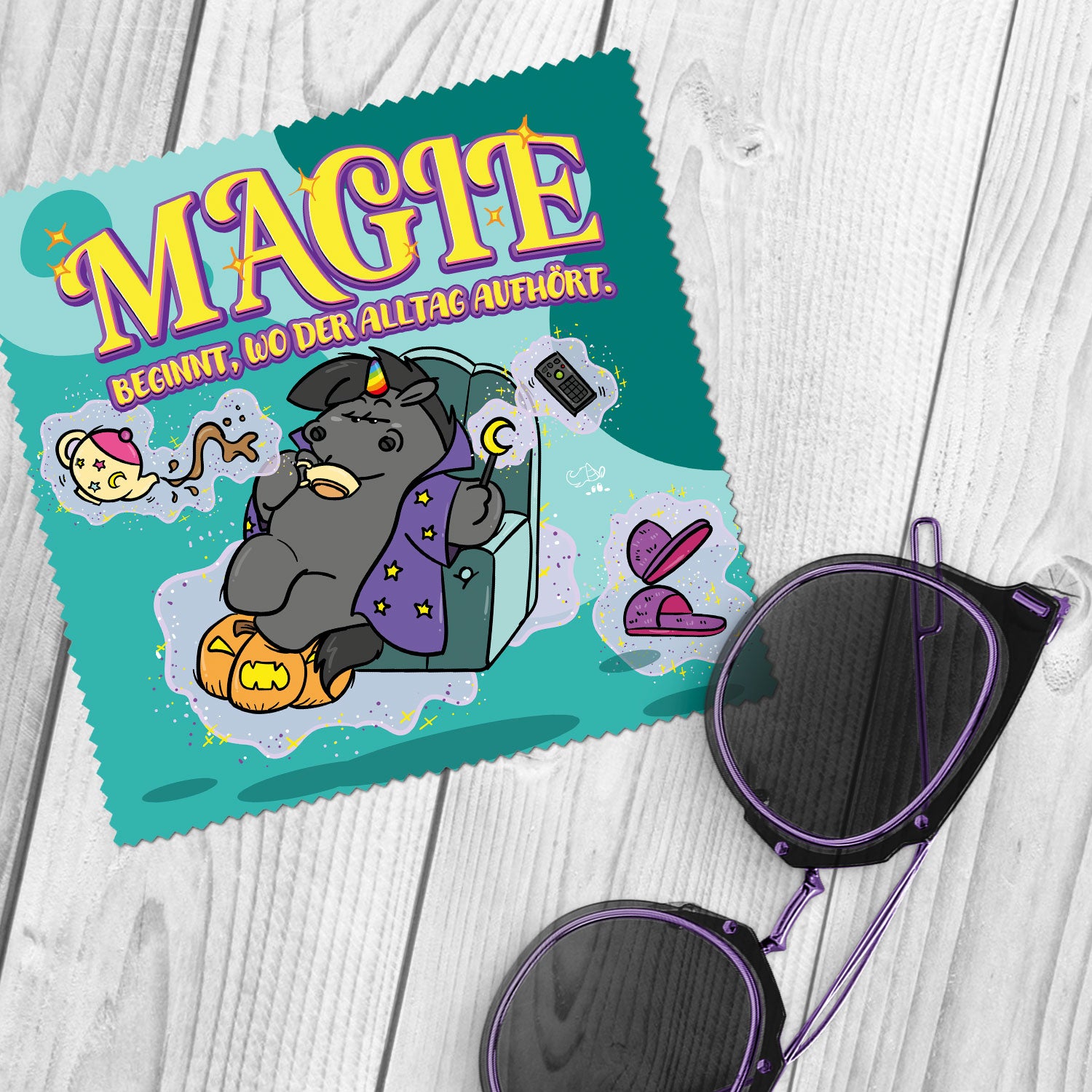 Eine kleine Auszeit, ein tiefer Atemzug – und schon beginnt die Magie. Dieses Brillenputztuch mit Grummel auf dem gemütlichen Sessel schenkt dir nicht nur klare Sicht, sondern auch eine liebevolle Erinnerung daran, dass die schönsten Momente oft mitten im Alltag stecken. Der Spruch „Magie beginnt, wo der Alltag aufhört“ trifft mitten ins Herz – und sorgt für ein Lächeln beim nächsten Brillen- oder Handyputzen.